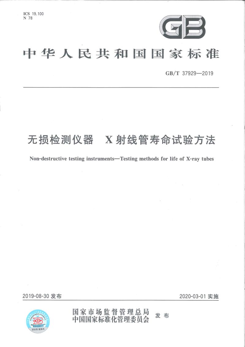 《無損檢測儀器X射線管壽命試驗方法》 GB/T 37929-2019 2019-8-30