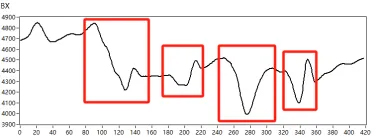 對(duì)3處連續(xù)缺陷進(jìn)行掃查,Bx信號(hào),Bz信號(hào)能夠清晰分辨缺陷。