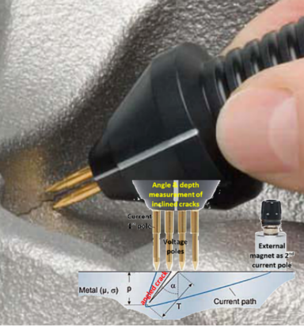 然而,ACPD技術(shù)存在較大局限性,限制了其在實(shí)際工程中的推廣。首先,其原理要求探針必須與工件直接接觸,因此檢測(cè)區(qū)域需打磨至金屬本色。其次,雙探針布置具有方向性,容易導(dǎo)致漏檢。雖可采用多組探針以改善該問題,但隨之而來的是更大的打磨面積和更復(fù)雜的數(shù)據(jù)處理。