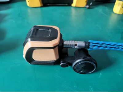 檢測設(shè)備采用國產(chǎn)LKACFM-X2型交流電磁場檢測儀,ACFM檢測儀如圖2左所示,檢測探頭為帶編碼器標準探頭,如圖2右所示,由雷莫線與儀器相連。