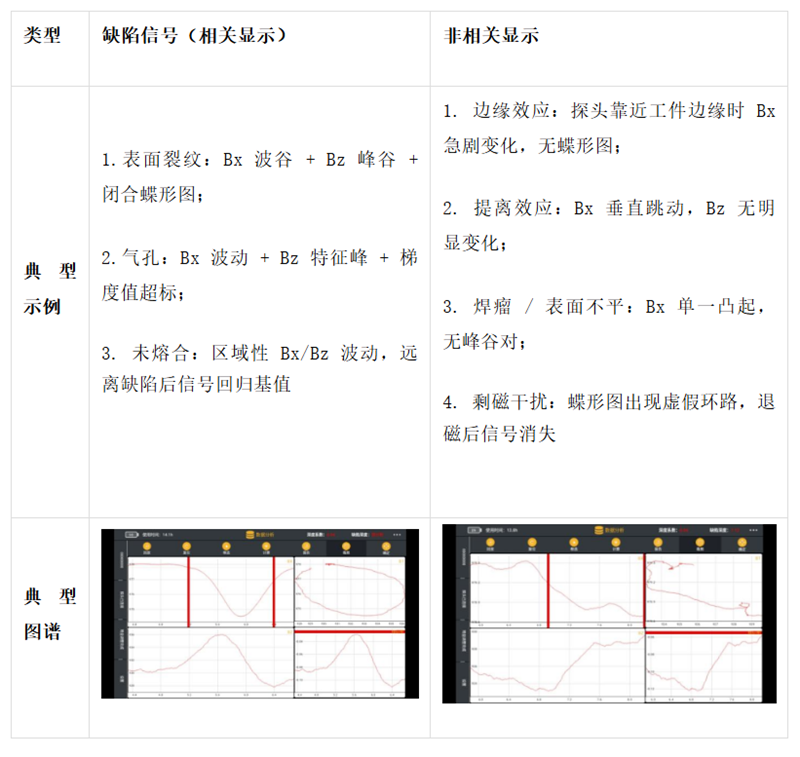 1.圖譜驗證法:缺陷信號必有“Bx/Bz峰谷特征+蝶形圖閉合/梯度超標”,非相關顯示無此組合;