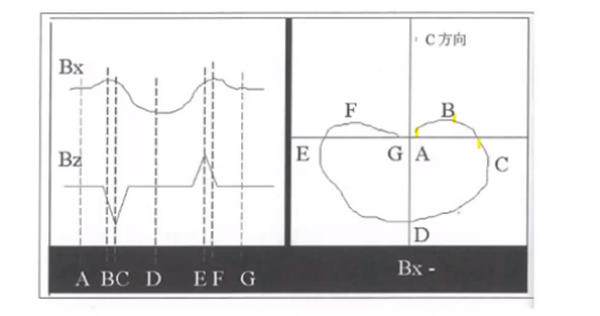 ACFM技術基于電磁感應原理,其核心思想是在被測導體表面施加均勻的交流電流(通常頻率在1-10kHz),電流在遇到缺陷(如裂紋)時會發(fā)生畸變,從而在缺陷周圍產(chǎn)生可測量的磁場擾動,如圖1所示。正常裂紋信號如圖2所示。